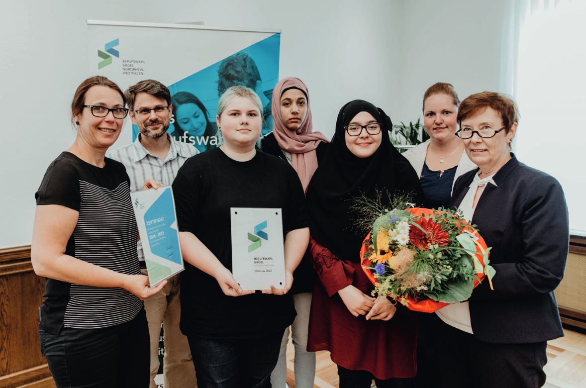 Am Mittwoch, den 08.05.2019 fand das AUDIT für die 1. Berufswahlsiegel-Rezertifizierung an unserer Schule statt. Das weiterentwickelte Berufsorientierungskonzept konnte auch dieses Mal die Jury überzeugen und so konnten wir bei einer Feierstunde in Bochum am 03. Juli unser neues Zertifikat entgegennehmen. Dieses dürfen wir jetzt wieder für drei Jahre führen, bis die nächste Rezertifizierung ansteht.