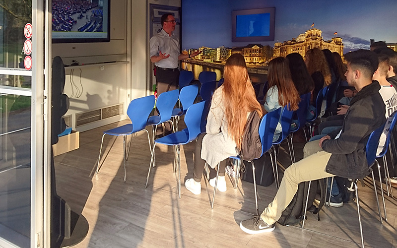 Das Bundestagsmobil ist ein weißer Truck, der auf 16 Metern Länge Gelegenheit bietet, mehr über die Arbeit eines Abgeordneten im Parlament zu erfahren. Eine riesige Fotowand sorgt im Inneren dafür, dass man meint, im Plenarsaal des Bundestags zu stehen. Neben Informationen durch die Mitarbeiter gab es Filme, PC-Stationen, Schaubilder und Broschüren.